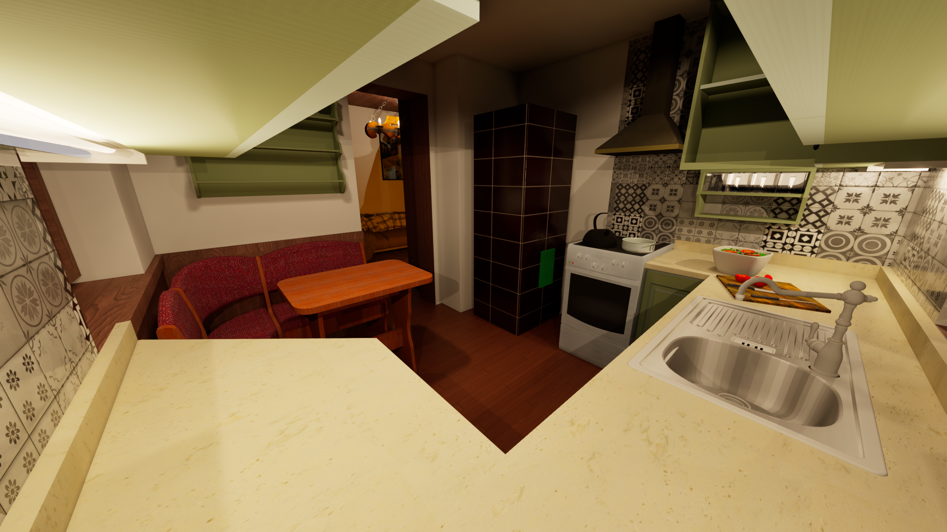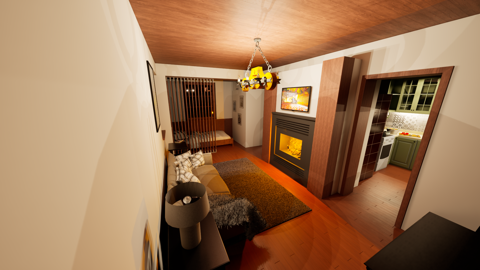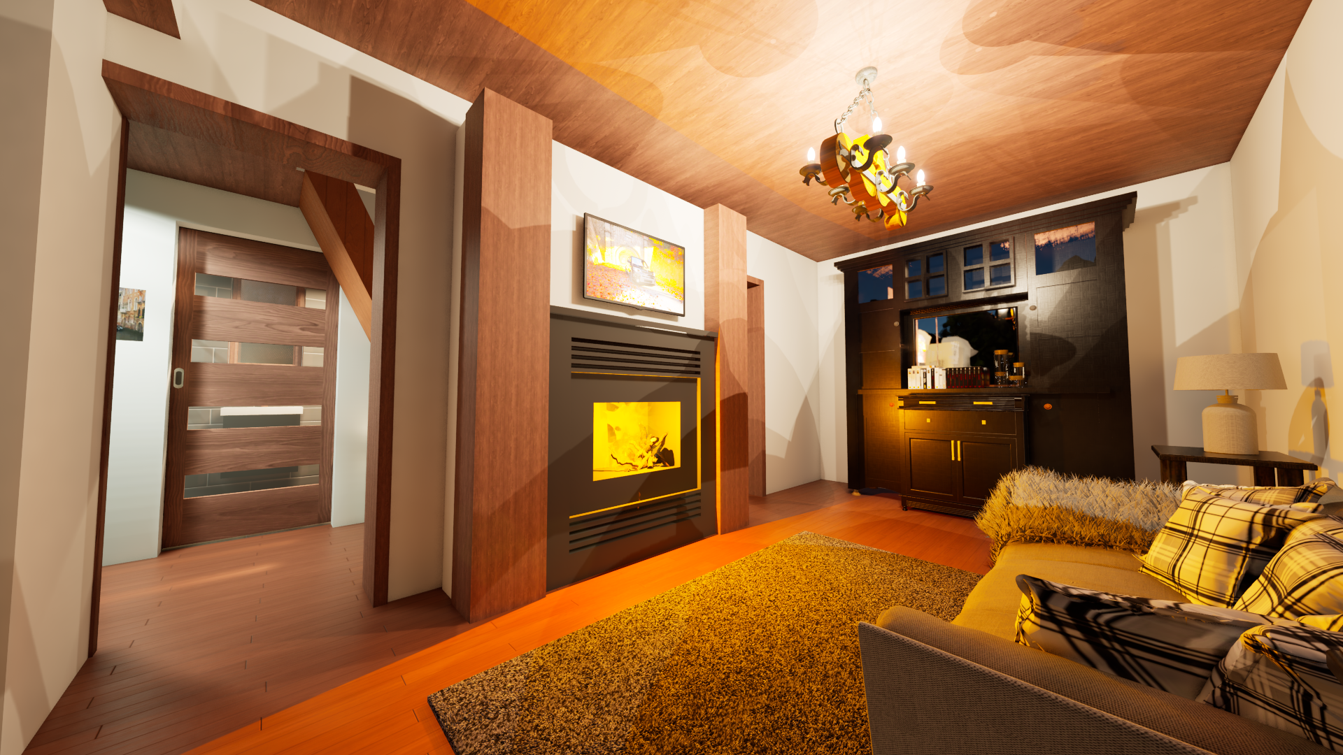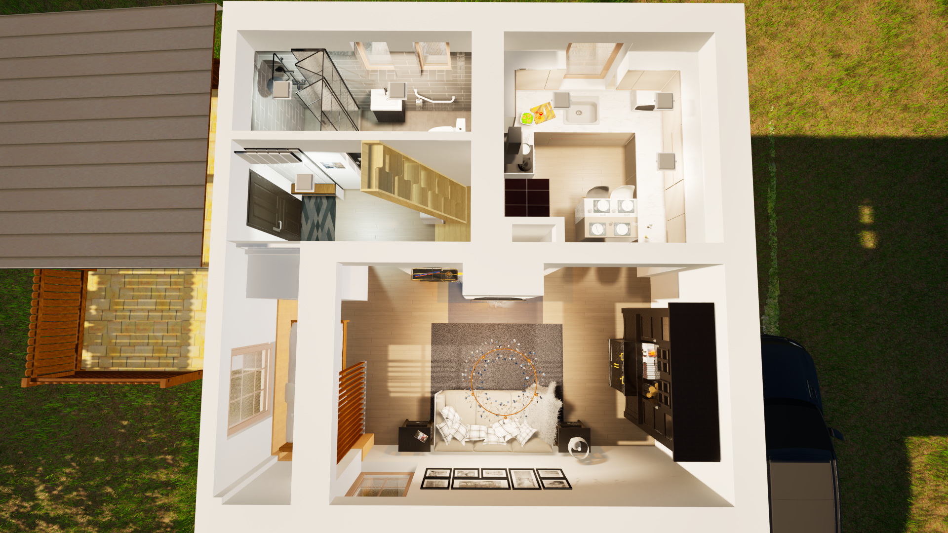 Rekonstrukce chaty – Jiřetín Po zkreslení stávající chaty a dle fotodokumentace jsem připravil prvotní návrh rekonstrukce a následné 2 varianty vizualizace.