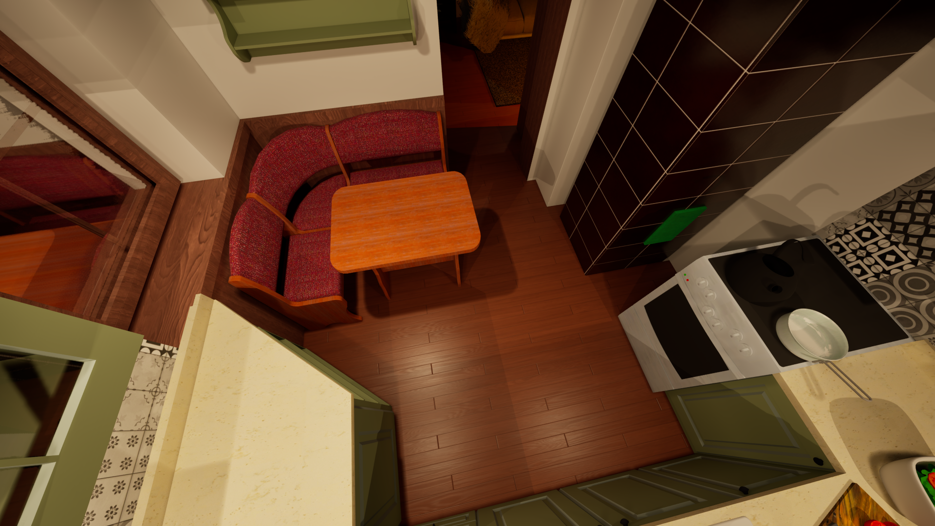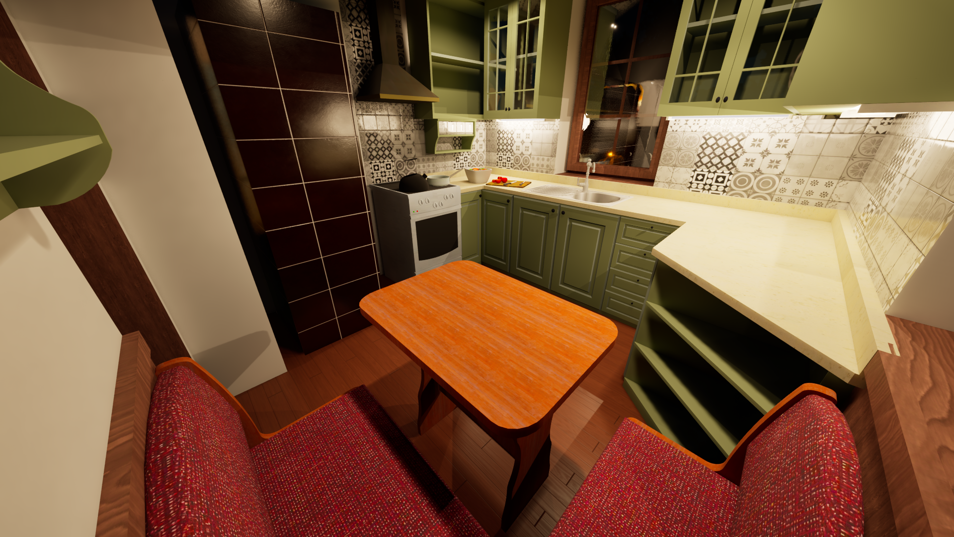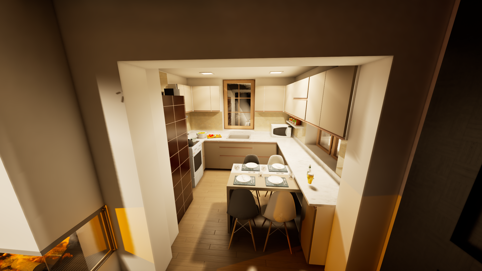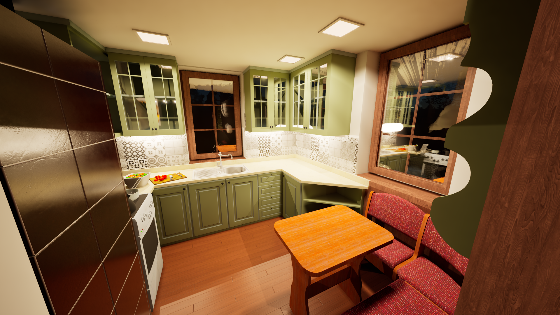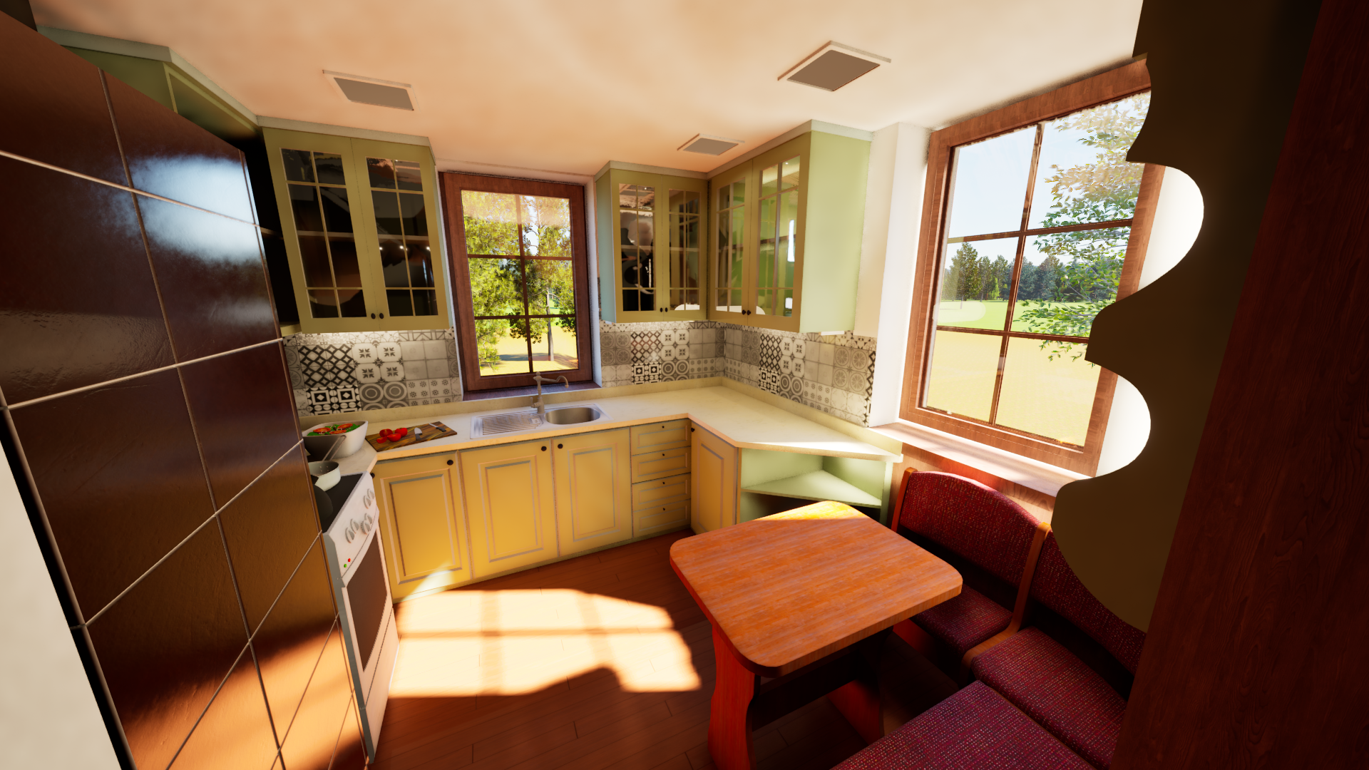 Rekonstrukce chaty – Jiřetín Po zkreslení stávající chaty a dle fotodokumentace jsem připravil prvotní návrh rekonstrukce a následné 2 varianty vizualizace.